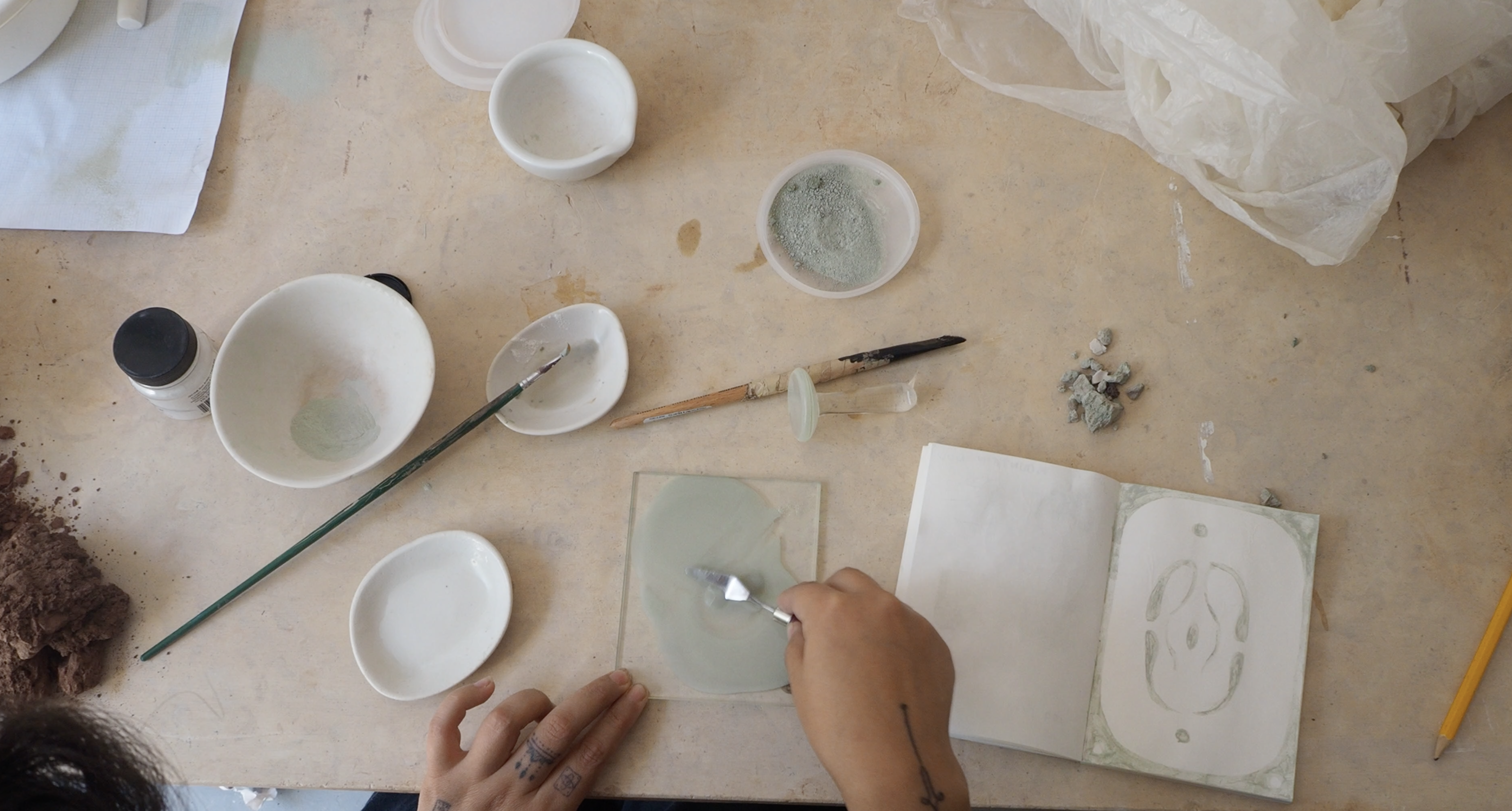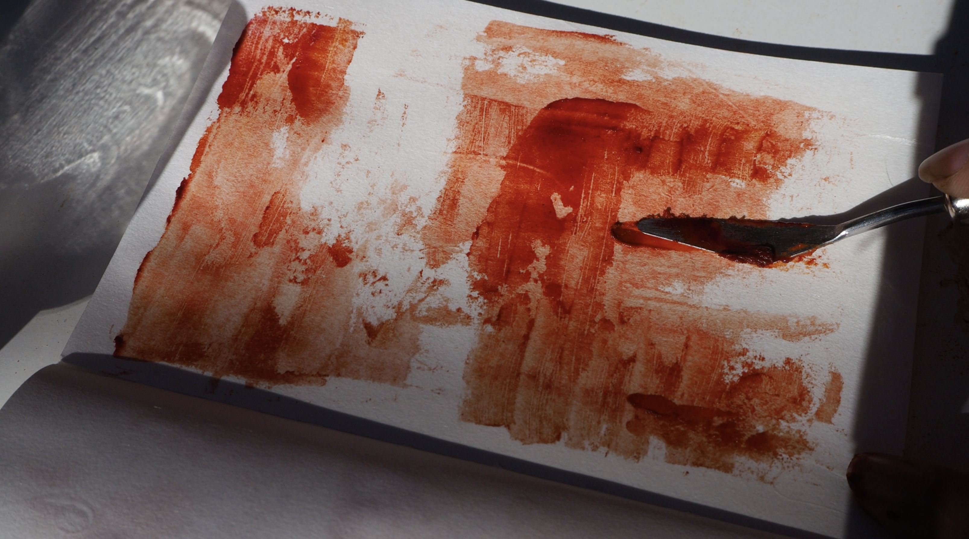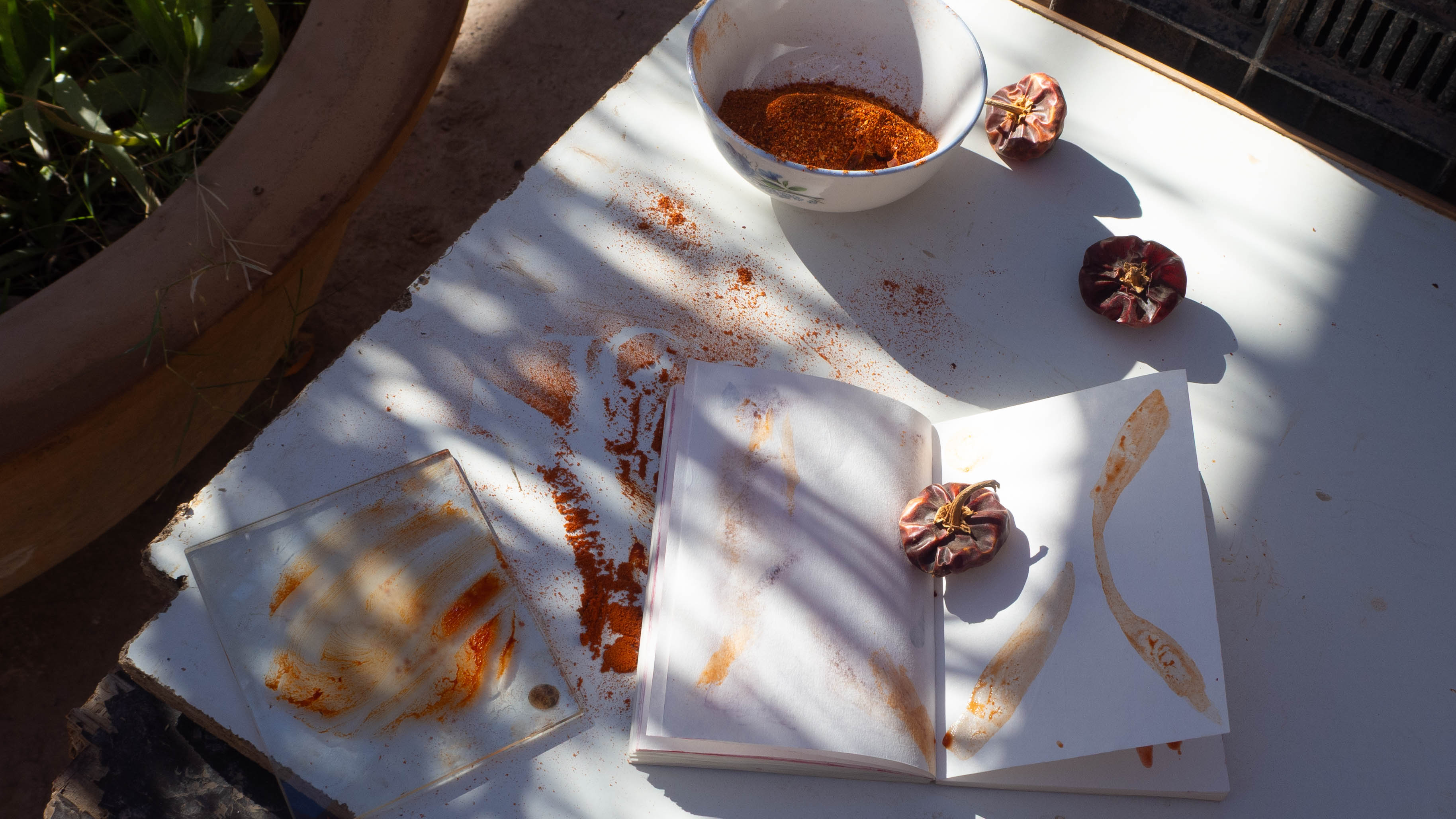 My residency in Marrakesh focused on learning the land through direct, attentive engagement. I spent time on the farm observing and collecting materials—soils, minerals, flowers, and fruits—exploring their potential as pigments and asking what new colours might emerge from the place itself. This process was rooted in presence: slowing down, testing, playing, and documenting what already existed rather than importing materials or ideas.