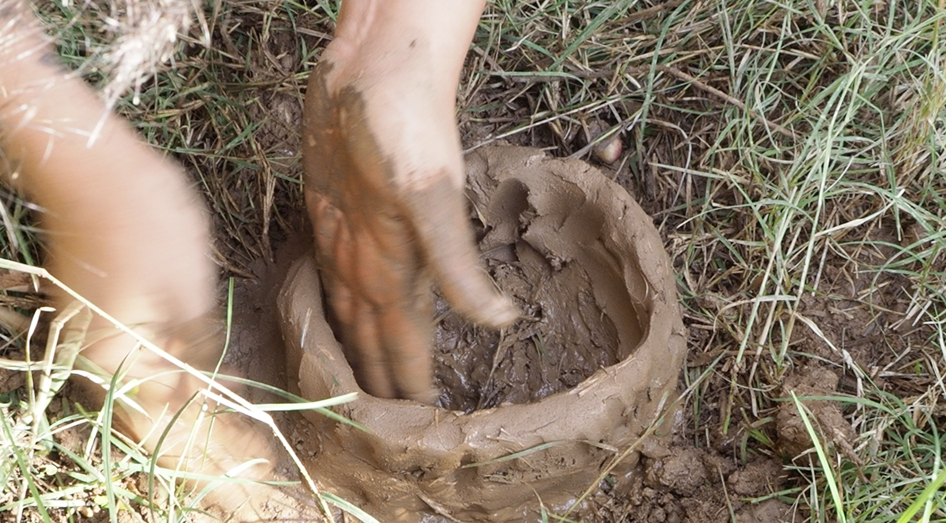 One of these pigments was used to paint a mural on the studio walls, conceived as a gesture of reciprocity—leaving something behind for the artists and community who hosted me. I also created clay from the farm’s soil and sculpted a bird bath, offered as a gift to the land and its non-human inhabitants.